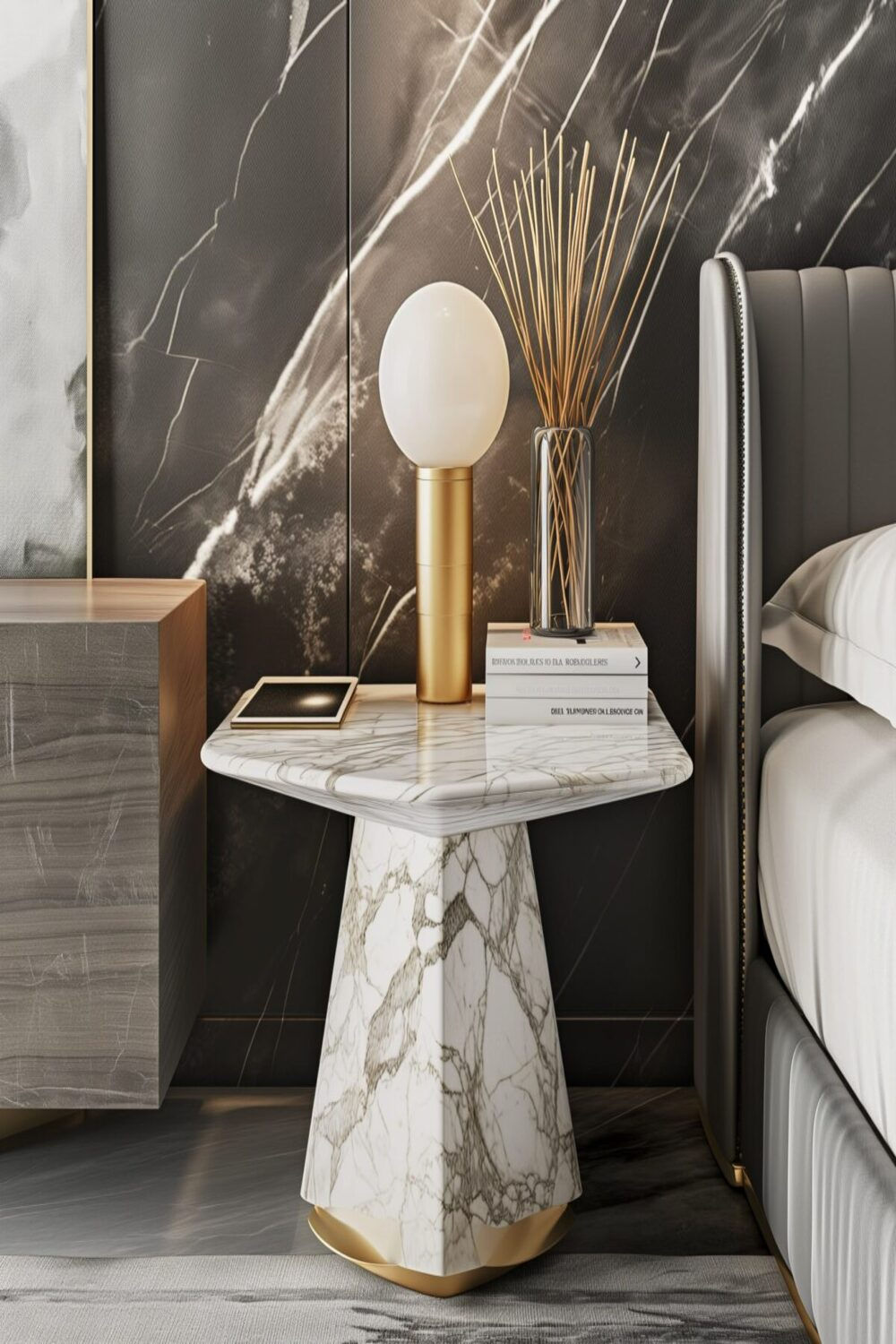 Chất liệu: Đá marble tự nhiên kết hợp kim loại mạ