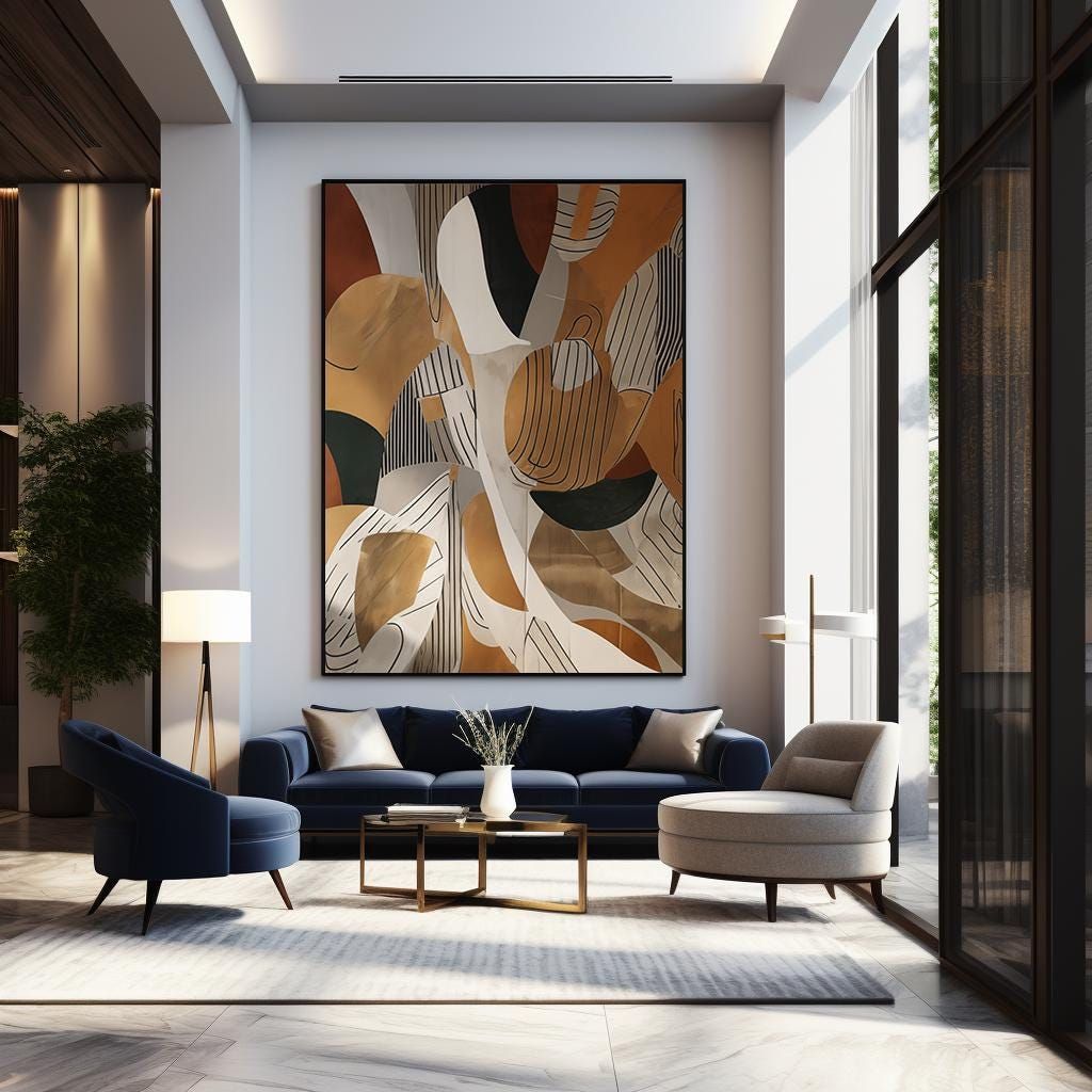 The work has a modern, luxurious look but still contains warmth, suitable to become a visual highlight in a large, light-filled space.