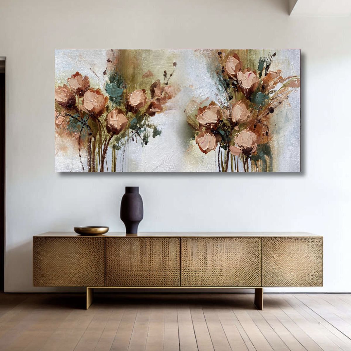 The composition design includes two large flower clusters, with liberal brush strokes, creating an artistic highlight suitable for decoration. living room, bedroom, lobby, office or modern – minimalist style space.