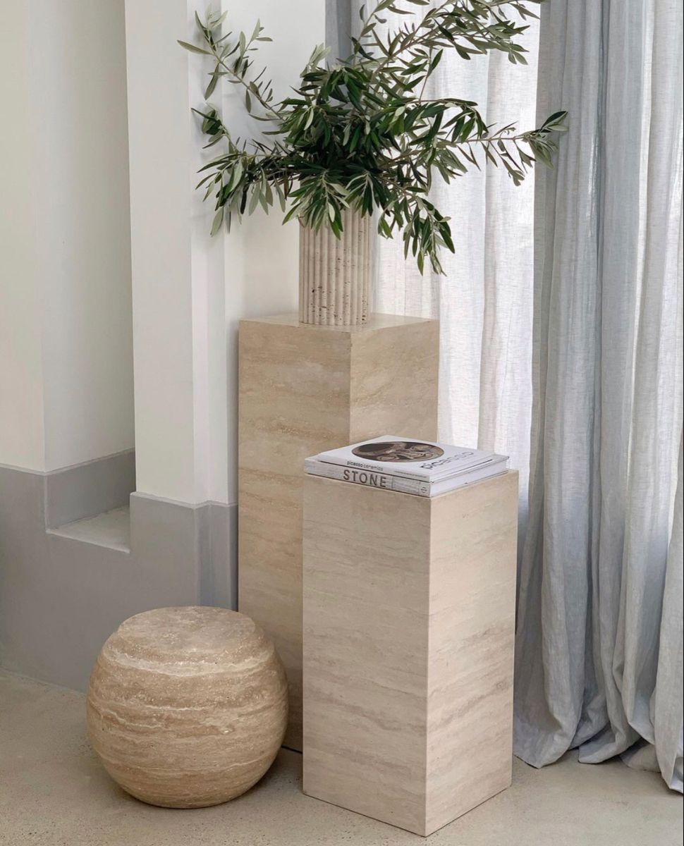 Mẫu bàn đá được chế tác từ đá tự nhiên với gam màu be sáng, bề mặt xử lý mịn và các đường vân đá nhẹ nhàng, tạo cảm giác tinh khiết và trang nhã. Thiết kế khối đứng chắc chắn, hình khối rõ ràng mang đến sự cân bằng giữa thẩm mỹ và công năng sử dụng. Sản phẩm thích hợp làm bàn trang trí hoặc bệ trưng bày sách, bình hoa, vật phẩm decor, góp phần tôn lên vẻ đẹp tối giản, sang trọng cho không gian sống.