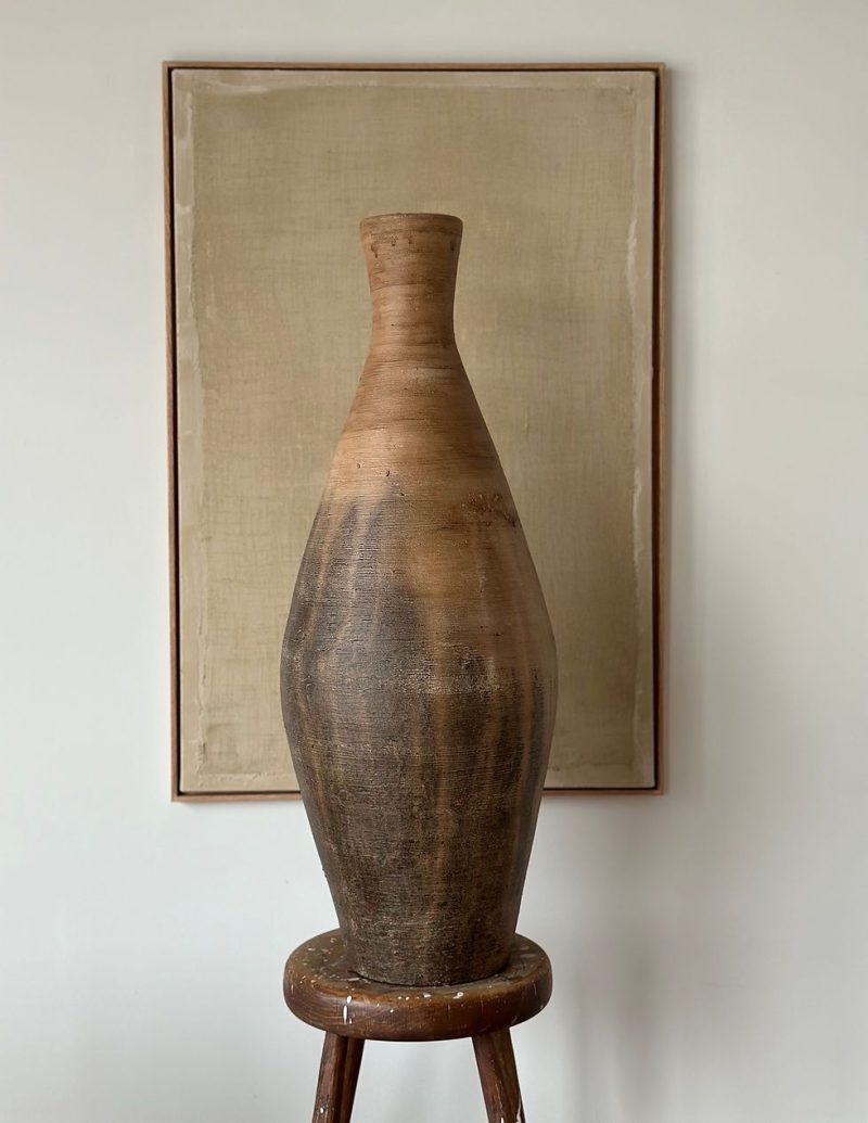 Điểm nhấn đặc biệt nằm ở lớp màu loang ombre từ nâu cháy sẫm ở chân lên be sáng ở cổ, tạo cảm giác như bóng ảnh in xuống trong làn khói – đúng tinh thần của tên gọi “Trầm Ảnh”. Sản phẩm lý tưởng để trưng bày độc lập, không cần cắm hoa, hoàn toàn phù hợp làm “tĩnh vật điêu khắc” trong không gian nghệ thuật, thiền định hoặc nội thất tối giản.