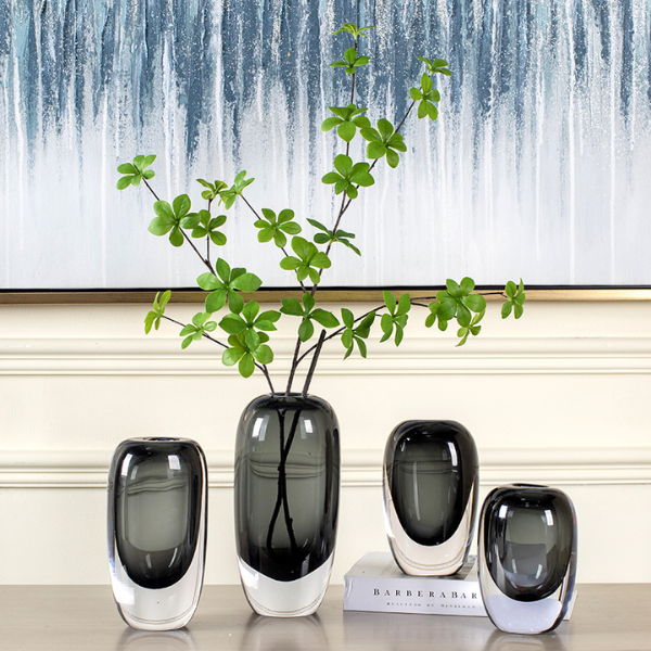 Bình hoa thủy tinh mang phong cách hiện đại với gam màu xám khói sang trọng, thiết kế bo tròn mềm mại tạo cảm giác tinh tế và thanh lịch. Chất liệu thủy tinh dày dặn, bề mặt trong suốt pha màu giúp tôn lên vẻ đẹp tự nhiên của hoa cành, hoa lá xanh. Sản phẩm phù hợp trang trí phòng khách, bàn làm việc hoặc kệ decor, góp phần mang đến không gian sống nhẹ nhàng, cao cấp và đầy tính thẩm mỹ.